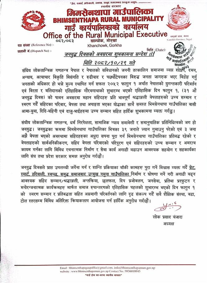 » जनयुद्ध दिवसको अवसरमा शुभकामना सन्देश ।