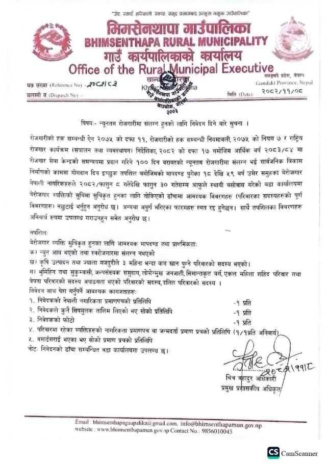 न्युनतम रोजगारीमा संलग्न हुनका लागि निवेदन पेश गर्ने सम्बन्धी सूचना ।