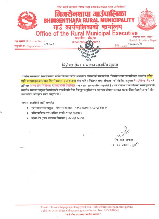 जानकारी सम्बन्धमा श्री वडा कार्यालय सबै भिमसेनथापा गाउँपालिका