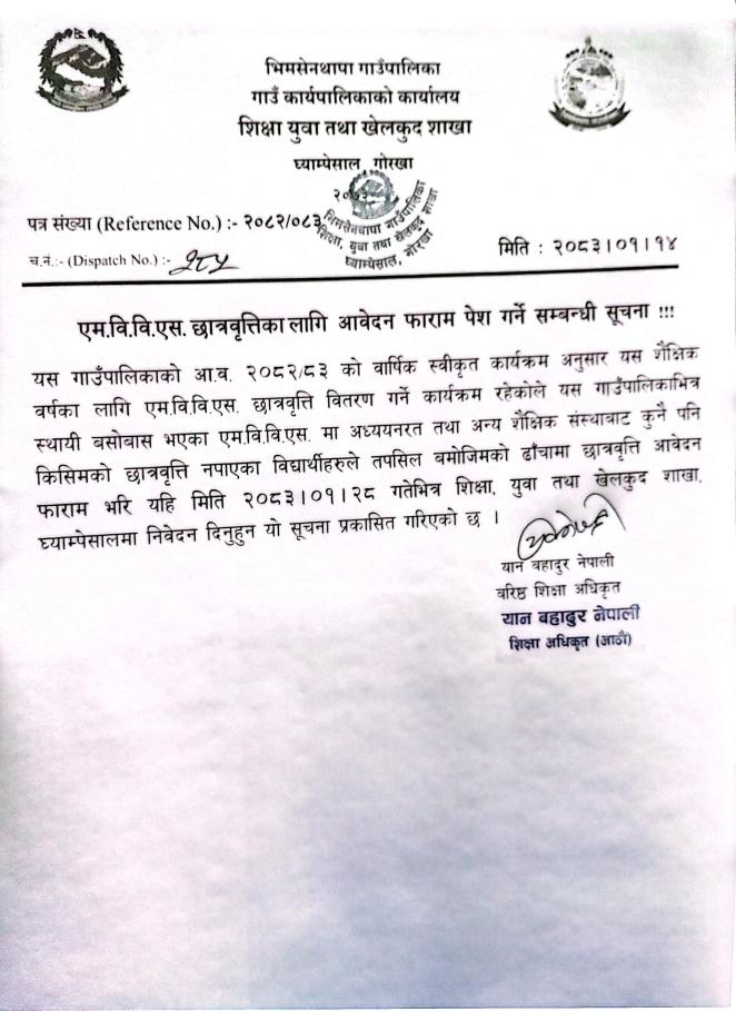 जानकारी सम्बन्धमा श्री वडा कार्यालय सबै भिमसेनथापा गाउँपालिका