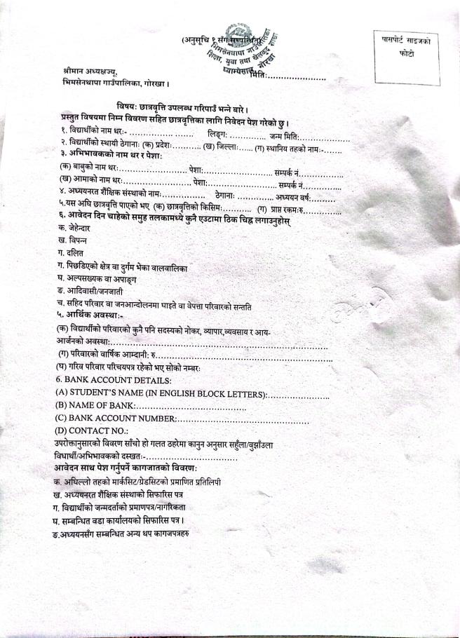 छात्रवृत्तिका लागि आवेदन फाराम भर्ने सम्बन्धी सूचना ।
