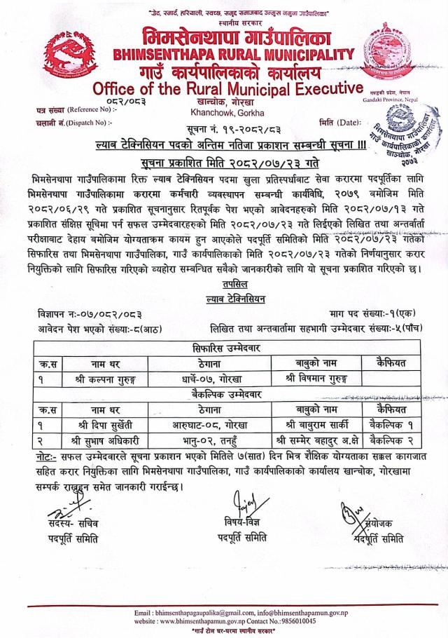 जानकारी सम्बन्धमा श्री वडा कार्यालय सबै भिमसेनथापा गाउँपालिका