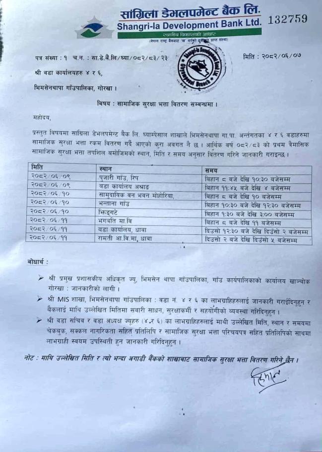 सामाजिक सुरक्षा भत्ता वितरण सम्बन्धी सूचना ।