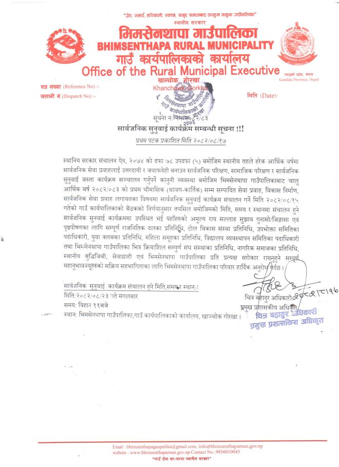 सार्वजनिक सुनुवाई कार्यक्रम सम्बन्धी सूचना ।